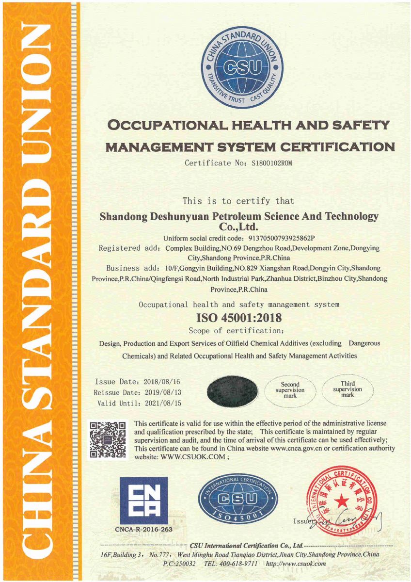 On August 19, 2019, the company is informed by China Standard International Certification Co., Ltd. that she has successfully passed the first supervision and audit of the certifications of quality management system, environmental management system and occupational health and safety management system with meeting requirements of certification standards. Thus the company will continue to maintain the certification registration qualification and the valid certificates.