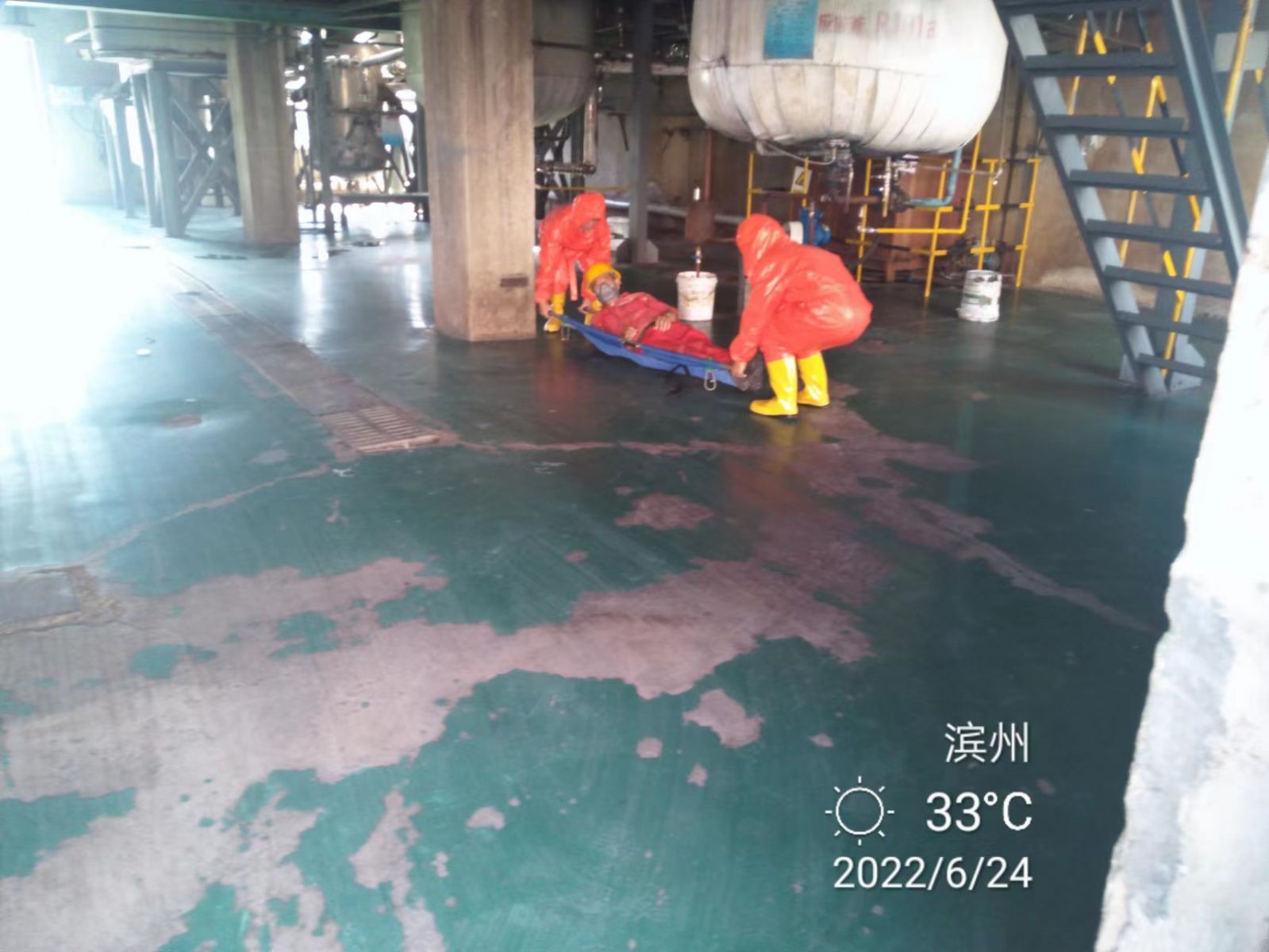 本次演練以模擬樹脂反應(yīng)釜苯酚進料管線泄漏引發(fā)員工灼燙及中毒和窒息事故,演練中出動了一輛應(yīng)急車輛、動用了消防報警系統(tǒng)及復(fù)合式噴淋沖洗器、消火栓等設(shè)施,搶險人員使用了防毒面具、空氣呼吸器、化學(xué)防護服等防護器材,演練取得了良好效果。